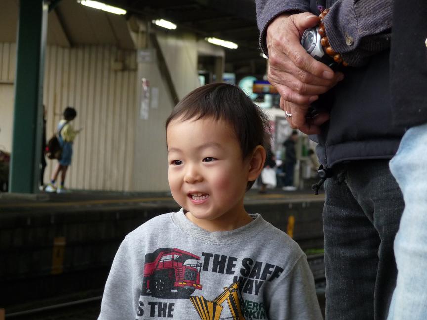 アーバンライナーが駅に入ってくると嬉しそうに見つめてます