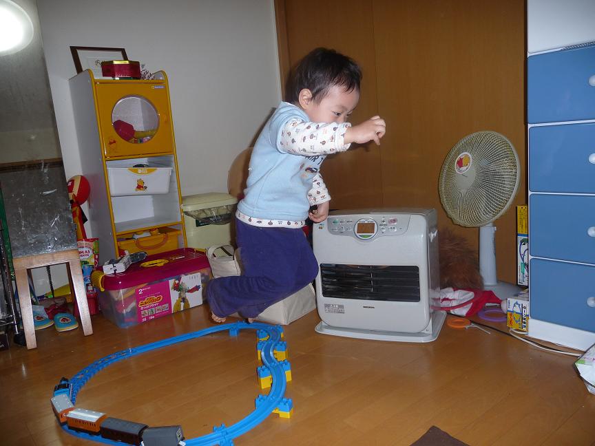 奇跡の一枚!!最近すごいジャンプ力がついたりくはカエルみたいにぴょーんと飛び跳ねてます。