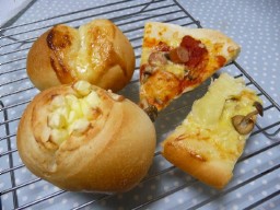 同じリッチ生地でこんなにたくさんの種類のパンが焼けました チーズパン、じゃがマヨパン、ウインナートマトピザにじゃがマヨピザ、どれもとっても美味しかったです