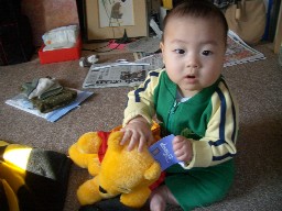 | 陸くん、めっちゃシッカリお座りしててかわいー  歩行器でお疲れな様もかわいー